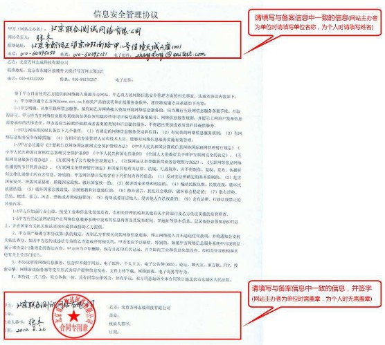 五.信息安全协议书需甲方填写相关信息及签字(需用黑色签字笔填写)单位须盖章,原件牌照或者扫描后上传。