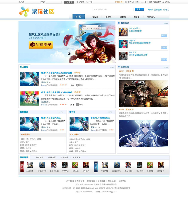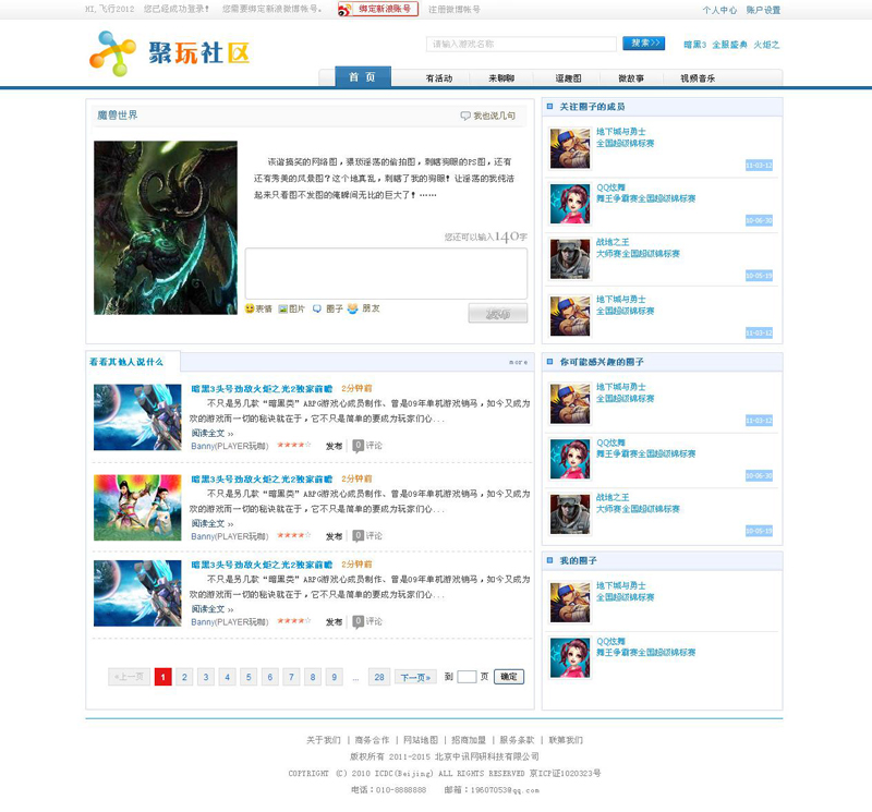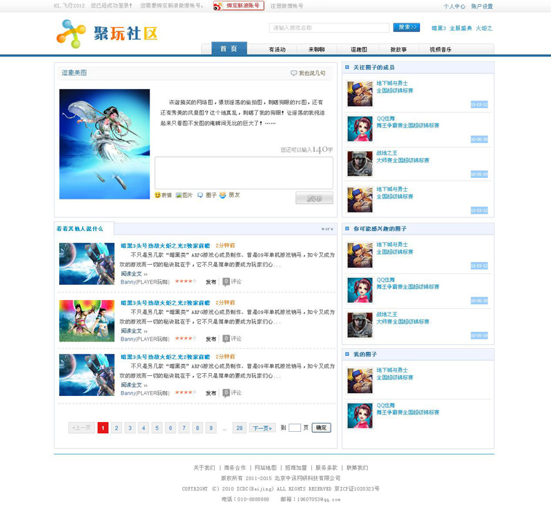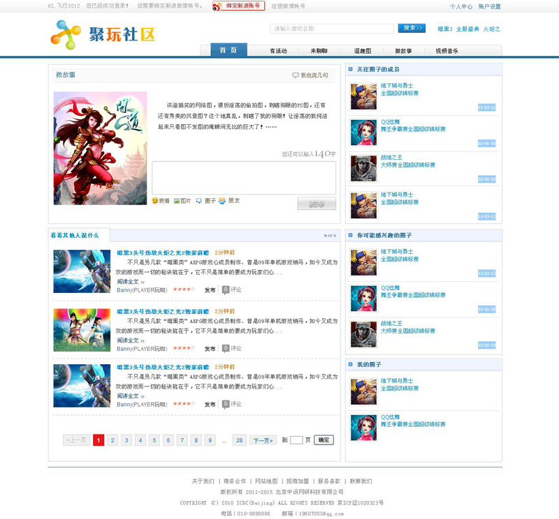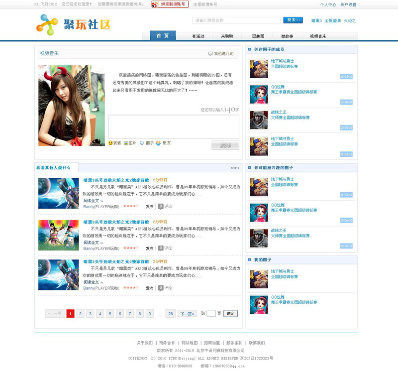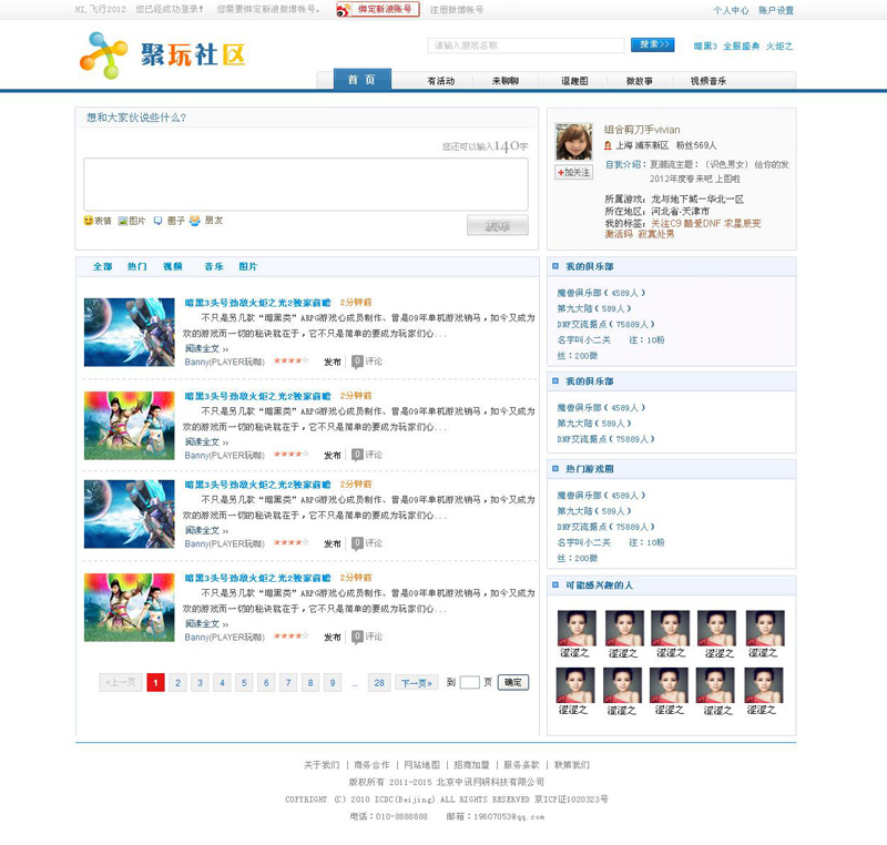 聚完网社区垂直型社交网站,主要用户群体为游戏爱好者,因此社交风格更加娱乐化,但是整个页面并不花哨,简洁,活泼!
