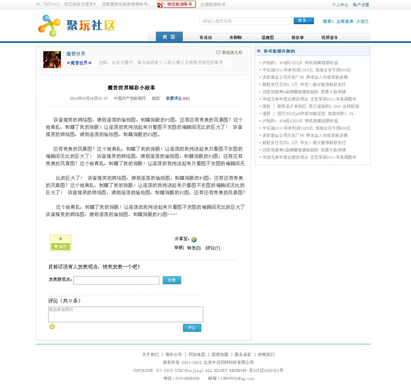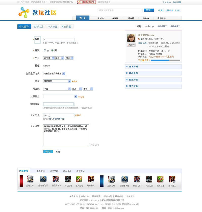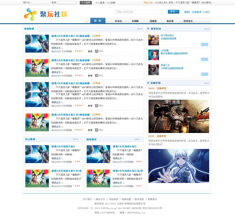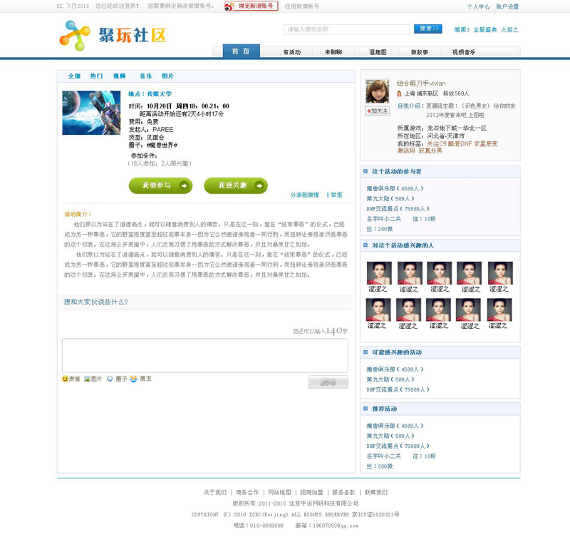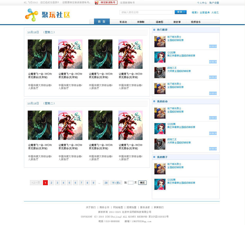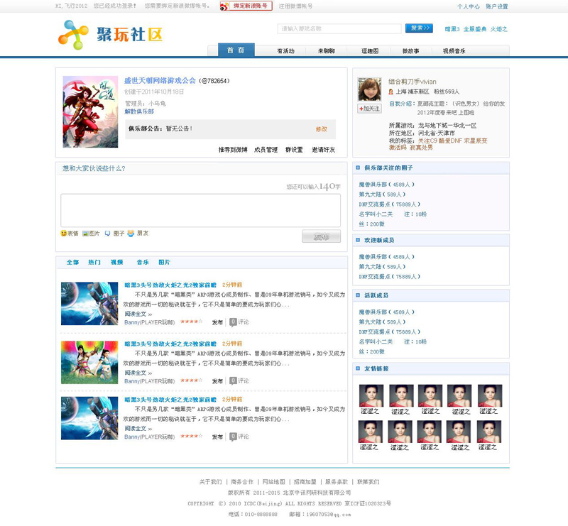 聚完网社区垂直型社交网站,主要用户群体为游戏爱好者,因此社交风格更加娱乐化,但是整个页面并不花哨,简洁,活泼!
