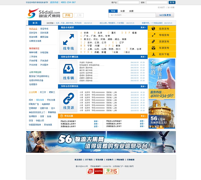 物流大集网是物流行业B2B垂直电商门户,用户注册后可及时发布车源货源等商机信息,vip会员还可拥有自己的会员主页,可拓展全国分站。