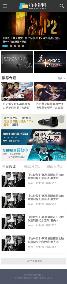 拍电影网是集专业资讯、电子商务、SNS社区于一体的电影类专业门户网站,内容全面覆盖编、导、演、摄、录、美、制片、投资、发行等各环节。拍电影网将不断整合社会各界资源