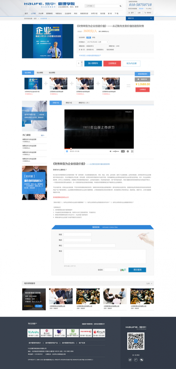 浩富易中管理学院立足自身精品管理课程开展在线购课,在线试听等全方位电子商务服务,是麦哲网联在电商网站建设领域的又一案例。